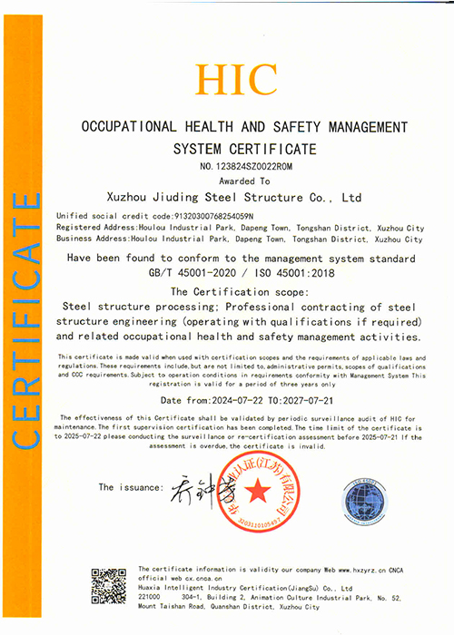 职业健康安全体系认证证书英文