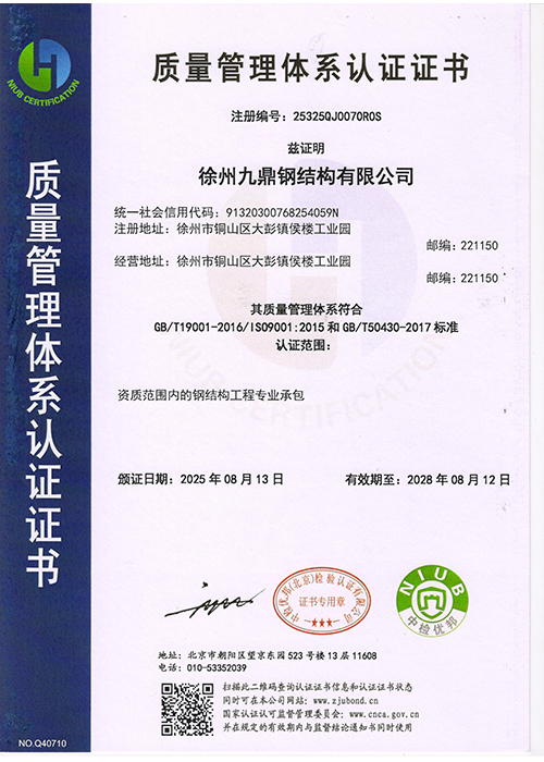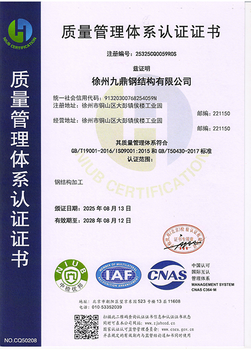 质量管理体系认证证书