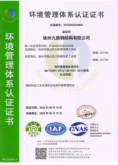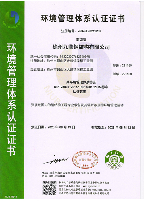 环境管理体系认证证书
