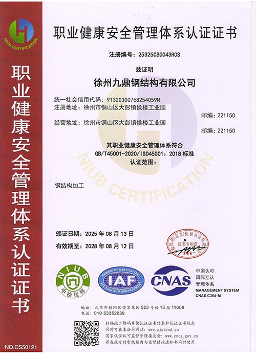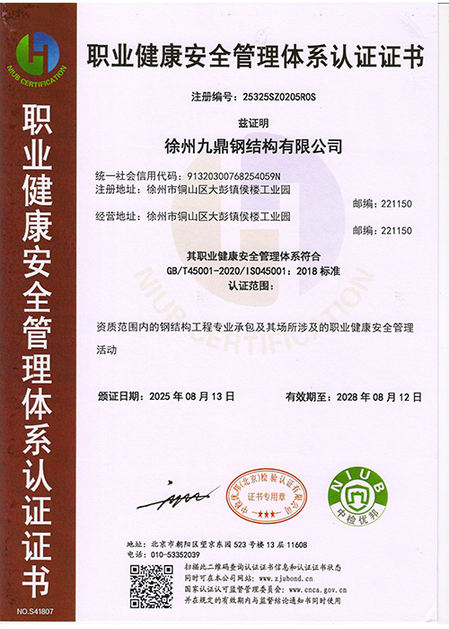 职业健康安全管理体系认证证书